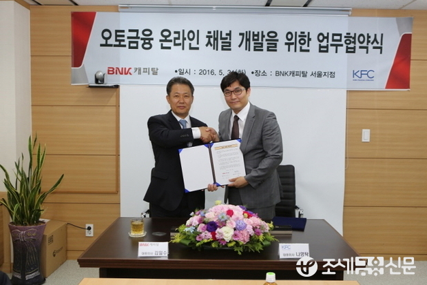 (조세금융신문=김사선 기자) BNK금융그룹 계열사인 BNK캐피탈(대표이사 김일수)이 여신금융 컨설팅 회사인 ㈜KFC(KOREA FINANCIAL CONSULTING)와 ‘오토금융 온라인 채널 개발’을 위한 업무협약을 31일 오후 체결했다.