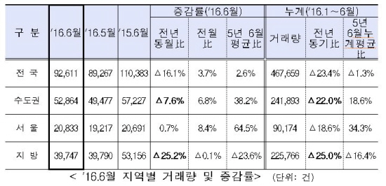 올해 상반기 주택매매 거래량은 ▲2013년 44만1000건 ▲2014년 47만3000건 ▲2015년 61만1000건 등을 기록했다.