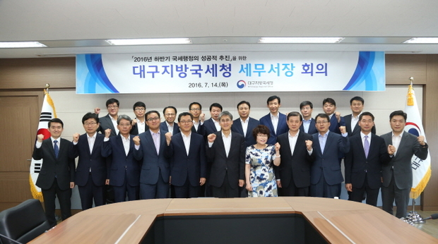 이날 회의에서 서진욱 대구청장은 ’16년 1기 확정 부가가치세 신고 업무의 차질 없는 추진 및 투명하고 세심한 사후검증, 경영에 어려움을 겪는 사업자에 대한 적극적인 세정지원, 근로·자녀장려금 추석 전 지급 등 2016년 하반기 국세행정의 성공적 추진을 당부했다.