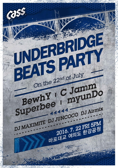 22일 오후 5시부터 10시까지 서울 마포대교 아래(여의나루역 인근) 한강공원에서 열리는 ‘언더브릿지 비츠 파티’는 힙합과 EDM을 중심으로 한 음악공연으로, 이번 공연에서는 자유분방하고 역동적인 느낌의 언더그라운드 문화를 압축적으로 보여줌으로써 젊음의 대표 맥주 ‘카스’의 역동성과 활력 넘치는 이미지를 알릴 예정이다.