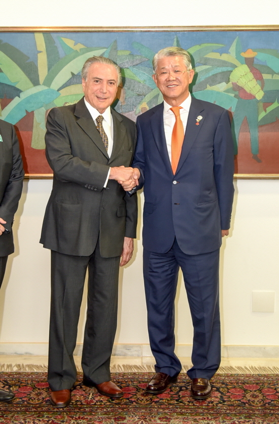 (조세금융신문=유명환 기자) 최신원 SK네트웍스 회장이 남미 최대 시장인 브라질에서 ‘토털 카라이프’ 사업 홍보에 나섰다.11일(현지시간) 최신원 SK네트웍스 회장은 브라질 수도 브라질리아에서 미셰우 테메르 브라질 대통령 권한대행과 만나 “SK네트웍스는 브라질에 진출하기 위해 사업 파트너와의 제휴 등 여러 노력을 하고 있다”며 “트레이딩 사업과 자동차 관련 사업에서 진출을 검토 중”이라고 밝혔다.