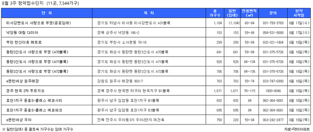 번주(14일부터 20일까지)에는 전국 11곳에서 7544가구가 분양한다.
