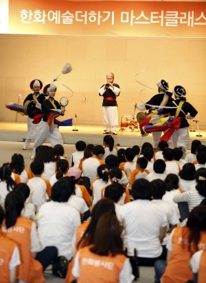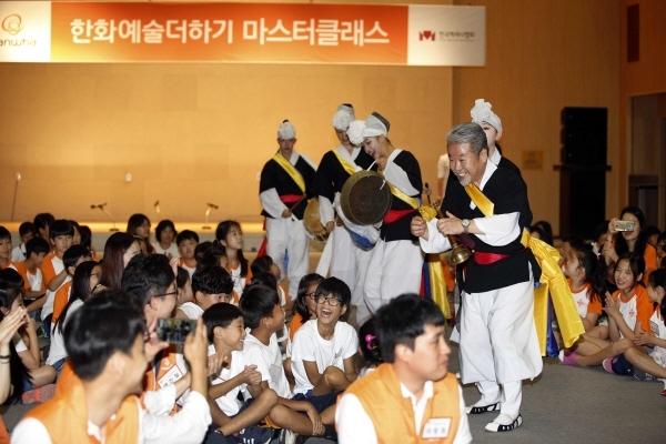 이날 참석한 아이들은 한화그룹과 한국메세나협회가 8년째 진행하고 있는 ‘한화예술더하기’ 문화예술사업의 일환으로 올해 3월부터 매주 1회씩 국악 및 서예/민화 등 전통문화교육을 수강하고 있는 초등학생들이다. 매주 아이들과 함께 전통문화교육을 배우고 지원하는 한화그룹 임직원 50명도 함께 했다.