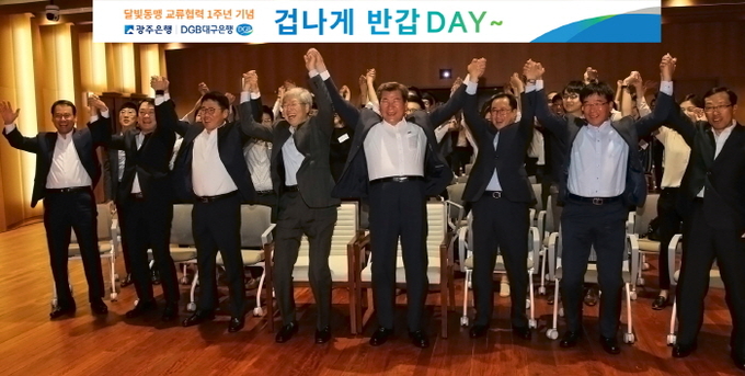 (조세금융신문=김사선 기자) 광주은행(은행장 김한)과 대구은행이 1일 양 은행간 달빛동맹 1주년을 맞아 기념행사와 함께 직원간 인적문화교류에 앞장섰다.