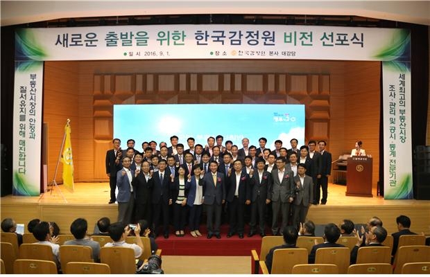한국감정원은 이날 한국감정원법 시행일에 맞춰 대구광역시 동구 혁신도시 본사에서 뉴-비전 선포식을 개최했다. 이날 행사는 감정원 임직원을 중심으로 진행되었으며, 강호인 국토교통부장관, 김동철 법제정 당시 국토교통위원회 위원장, 권영진 대구광역시장, 권선주 중소기업은행장 등이 축하메시지를 전했다.