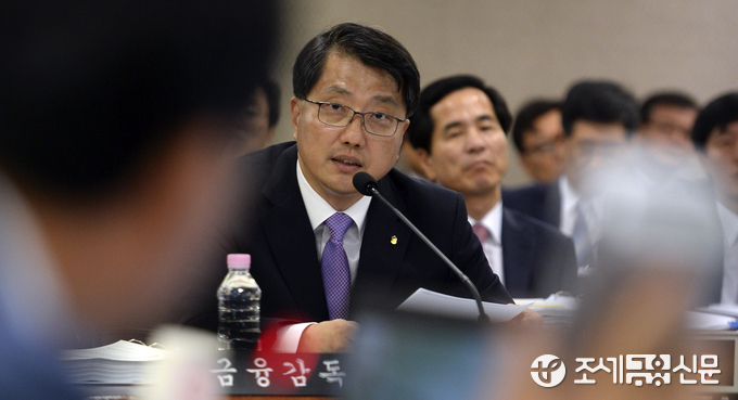 (조세금융신문=유명환 기자) 13일 열린 국회 정무위원회 국정감사에서 진웅섭 금융감독원장이 국회의원들의 질의에 답변하고 있다.