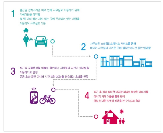 또한, 보고서는 2008년 글로벌 금융위기를 기점으로 부상된 공유경제도 소셜시티의 원동력으로 봤다. 공유경제는 사물, 공간, 지식, 재능 등 유무형의 재화와 서비스를 소유하는 형태에서 벗어나, 개인 간 교환, 공유, 대여하는 방식의 사회적 경제모델이다.