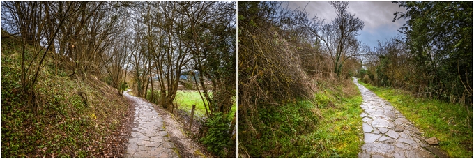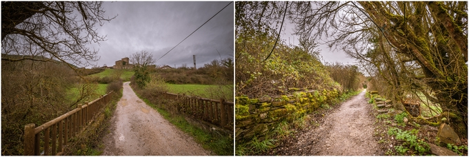 ▲ 무너진 집터도 보이고 숲길도 지나간다. 바로 위 왼쪽 사진은 길을 가다가 누군가 여기서 쓰러진 듯 보인다. 오른쪽은 Irotz란 마을인데 피자집이 소개 자료대로 있긴 한데 문을 열지 않아서 그대로 지나쳤다.