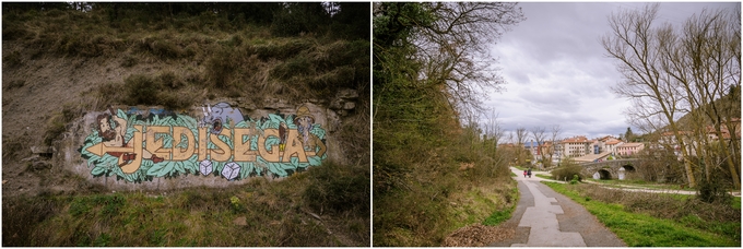 ▲ 본격적으로 도시를 가로질러 건너가니 낡은 건물과 벽에 이런 저런 그림을 그려 놓은 곳도 보인다.