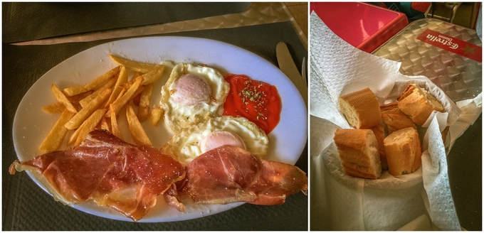 여기 알베르게는 숙박만 제공하는 곳인데다, 아침 식사는 가다가 열려 있는 식당을 만나면 그 때 먹자는 생각에 아침 거리를 따로 준비하지 않았는데, 전날 저녁 식사를 한 식당이 마침 아침 식사 시간에 맞춰 문을 열어 놓았다. 반가운 마음에 들어가 배를 든든히 채우고 길을 떠날 수 있었다.