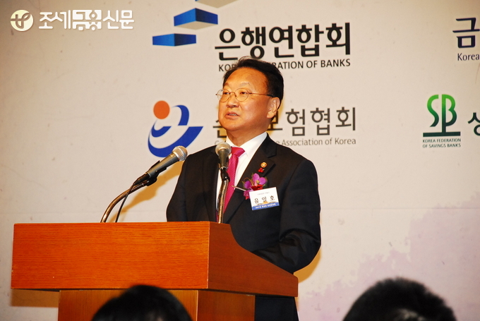 (조세금융신문=김필주 기자) 유일호 경제부총리가 '2017년 범금융 신년인사회'에 참석해 참가자 중 처음으로 신년사를 발표하고 있다.