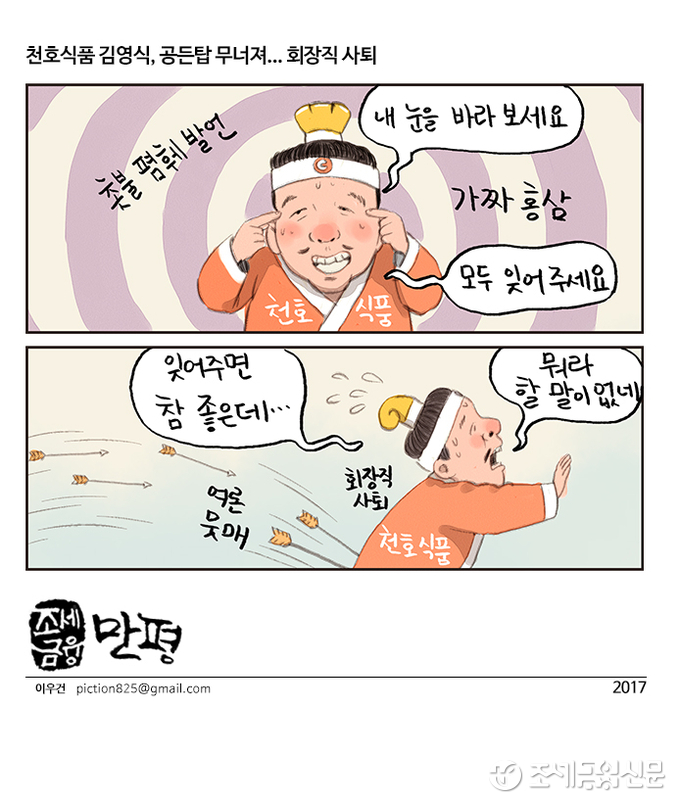 [조세금융 만평] 천호식품 김영식, 공든탑이 무너졌다..회장직 사퇴