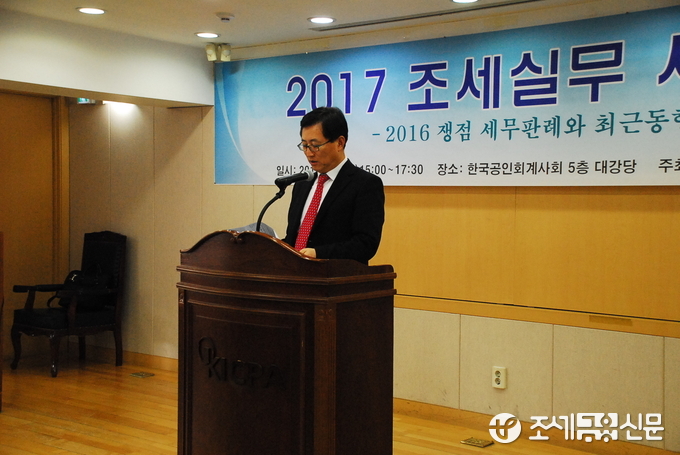 (조세금융신문=김필주 기자) '2017 제1차 조세실무세미나' 시작 전 인사말을 발표하는 최중경 공인회계사 회장