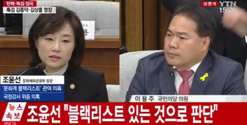 이에 조윤선 장관은 당황한 듯 “특검에서 조사를 하고 있고 그 전모가 밝혀질 거라고 저도 믿고 있다”고 답했다.