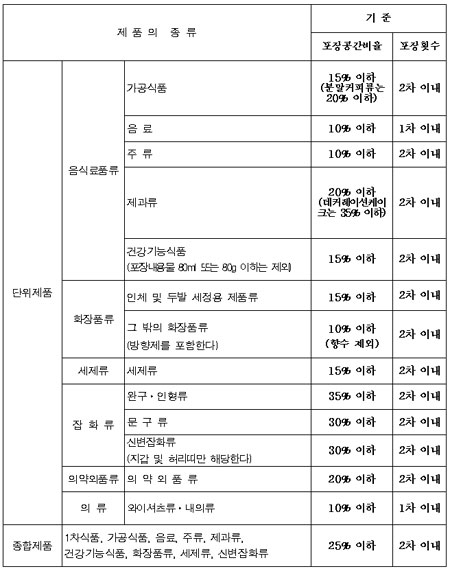점검 결과 제품을 규정 포장횟수를 초과하여 2중, 3중으로 포장하거나, 제품의 포장공간비율이 품목에 따라 10~35%를 초과하는 경우 최대 300만원의 과태료가 부과된다.