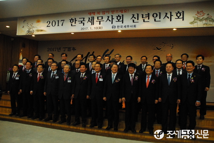 (조세금융신문=김필주 기자) 2017 한국세무사회 신년인사회에 참석한 정관계 인사들이 백운찬 한국세무사회 회장과 기념촬영을 하고 있다.