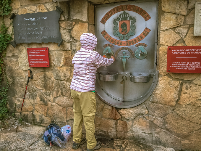 멀리서 보이더니 좀 더 가니 와인과 물이 나오는 샘을 볼 수 있었다. 아예기(Ayegui)에서 700m 정도만 오면 도착하는 곳이다.