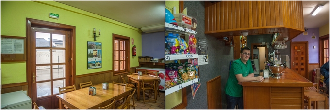 빌리마요르 데 몽하르딘(Villamayor de Monjardin)에 도착했다. 길을 따라가면 식당이 없을 듯해서 바(Bar) 안내 표시를 따라 마을 위로 올라가니 가게 문을 열었다. 스페인에선 문을 열지 않는 가게를 많이 볼 수 있어서 내심 걱정하면서 왔는데 문이 열려 있으니 반갑기 그지 없다. 비옷을 벗고 들어가 보니 소미 부모님이 먼저 도착해서 점심을 먹고 계신다. 커피와 치즈가 들어간 바게트 샌드위치를 주문해서 먹고 나니 배고프고 춥던 느낌이 겨우 가신다.