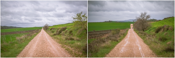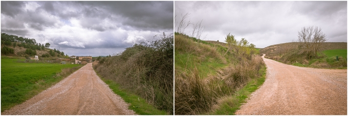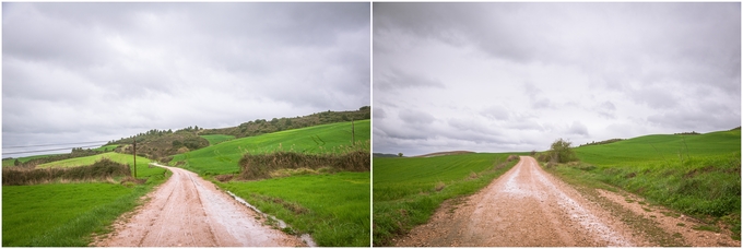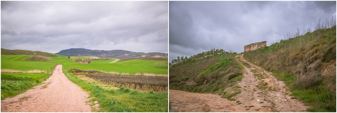 여기에서 목적지인 아르코스(Los Arcos)까지 12km 정도 벌판만 있다고 한다. 말 그대로 고독한 길인 셈이다. 거기에 비까지 내리고 있으니 잊지 못할 길이 될 듯 하다.