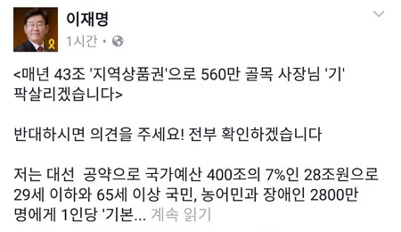 (조세금융신문=이유리나 기자) 이재명 성남시장이 매년 43조원대 지역상품권으로 560만 자영업자에게 예산폭탄 쏟을 예정이다.