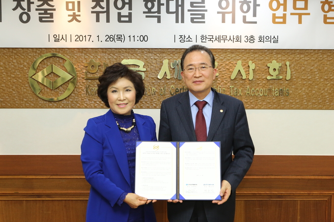 (조세금융신문=이지한 기자) 한국세무사회(회장 백운찬)는 26일 서초동 세무사회관에서 (사)한국여성인력개발센터연합(회장 조태임)과 일자리 창출 및 취업 확대를 위한 업무협약을 맺었다.