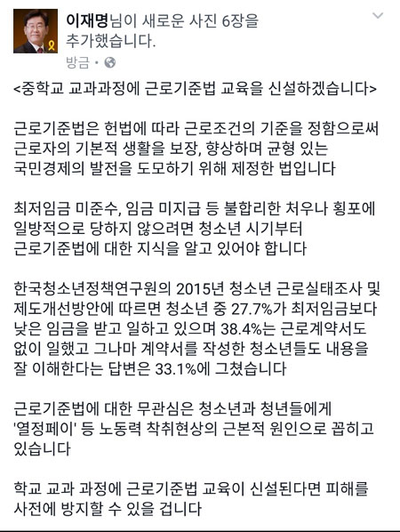 3일 이 시장은 페이스북을 통해 이 같이 밝혔다. 현행 근로기준법은 헌법에 따라 근로조건의 기준을 정함으로써 근로자의 기본적 생활을 보장, 향상하며 균형 있는 국민경제의 발전을 도모하기 위해서 제정한 법이다.