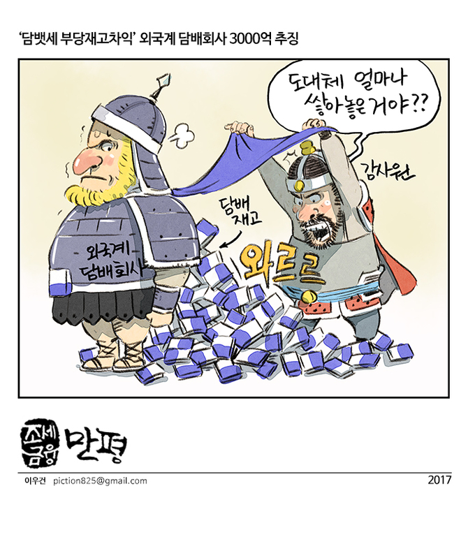 [조세금융만평]'담뱃세 부당재고차익' 외국계 담배회사 3천억원 추징