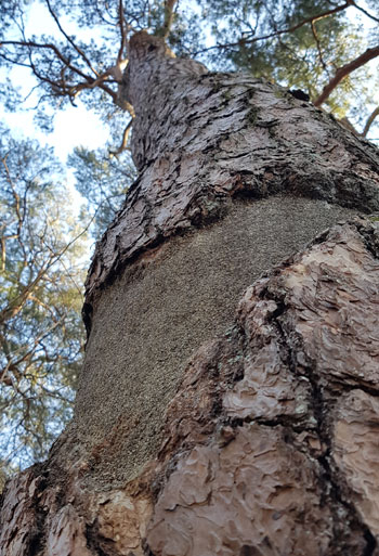 다만 국립산림과학원 측은 “피해목들의 건강상태가 양호한 것은 다행스러운 일이지만 송진 채취를 위한 ‘V’자 상흔이 최대 1.2미터 높이까지 남아 있어, 소나무와 주변 산림 경관상 좋지 않다”고 전했다.