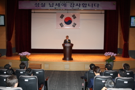 행사는모범납세자 등 포상, 납세자 대표(조성제 회장) 기념사, 서 청장의 기획재정부 장관 치사 대독 순으로 진행되었다.