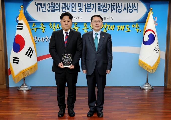 관세청은 국산화장품(55억원 상당) 밀수출 조직을 적발한 공로로 안 행정관을 3월의 관세인으로 선정해 시상했다고 4일 밝혔다.