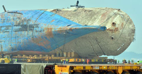 이렇게 육상으로 완전히 옮겨진 세월호는 목포신항에 마련된 거치대 위에 다시 올려 놓으면 ‘육상 거치’ 작업이 마무리된다.