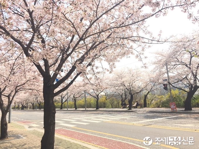(조세금융신문=신경철 기자) 11일 서울 여의도 앙카라공원 대로변에 길게 늘어선 벚꽃나무들의 꽃잎이 바람에 휘날려 떨어지고 있다.