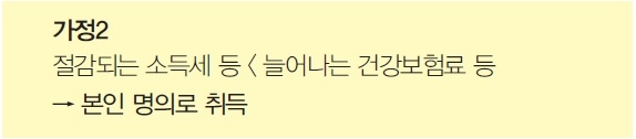 해당 사례의 경우 소득공제 변수를 무시하고 건강보험료가 연간 432만원 이하로 나온다면 김씨 배우자 명의로 취득하는 것이 더 유리하다는 결론이 나온다. 참고로 상가나 오피스텔 취득 시 발생하는 지역건강보험료는 사업자등록을 하면 부과되는 것이 원칙이나, 근로소득자의 경우에는 임대료에서 경비를 제외한 소득금액이 연간 7200만원을 넘어야 지역건강보험료가 추가된다.