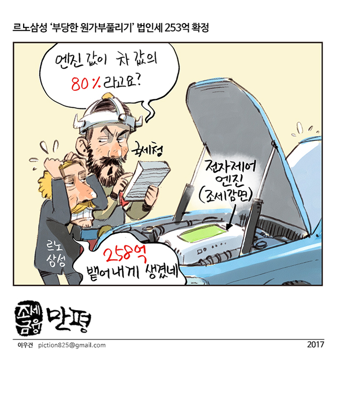 [조세금융만평]르노삼성, '부당한 원가 부풀리기' 법인세 253억원 확정