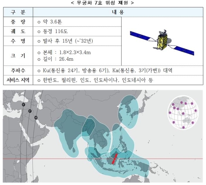 특히, 이번 무궁화 위성 7호는 지상관제시스템을 한국전자통신연구원(ETRI)이 천리안 통신위성 개발 사업을 통해 확보한 기술을 바탕으로 국내 제작했다.