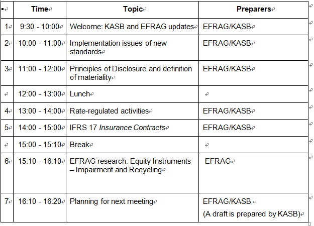 이번 회의는 지난해 7월 회계기준원이 벨기에 브뤼셀에 위치한 EFRAG을 방문해 가진 회의에 이어 두 번째 연석회의다.