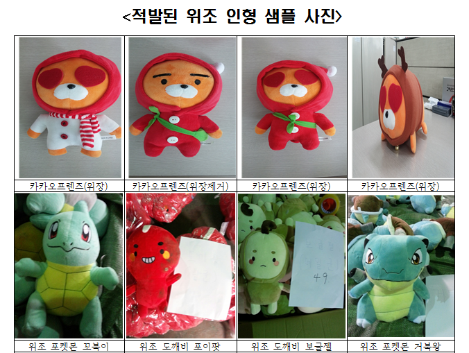 관세청은 지난 4월 25일부터 이달 2일까지 ‘인형 뽑기방’에 공급되는 캐릭터 인형의 불법 수입·유통을 기획단속해 가짜 봉제인형 53만점, 시가 72억 원 어치를 적발했다고 9일 밝혔다.