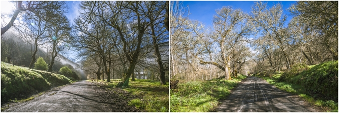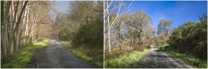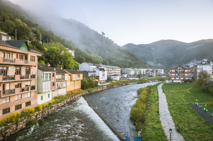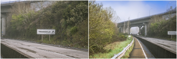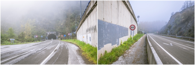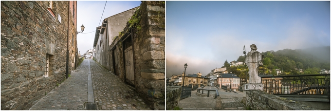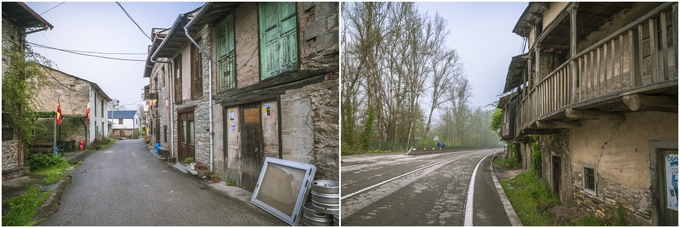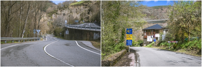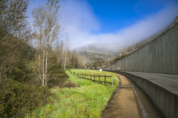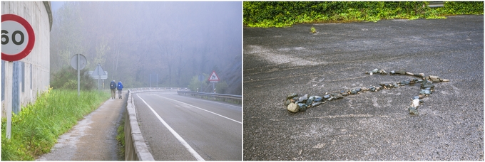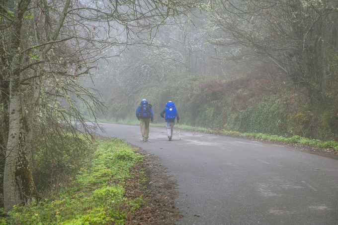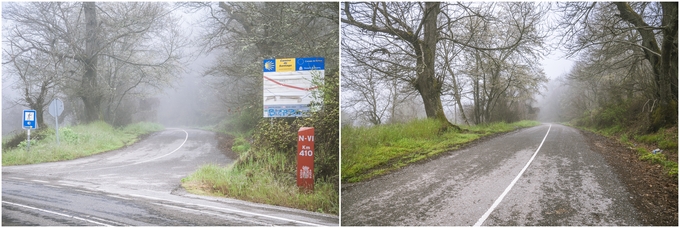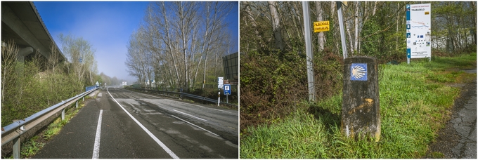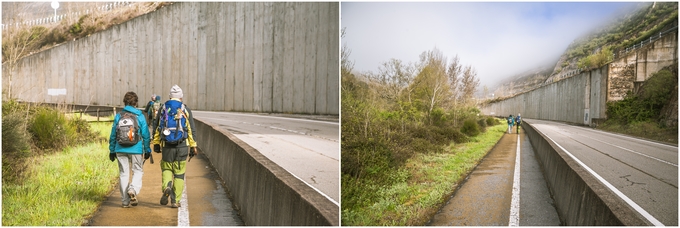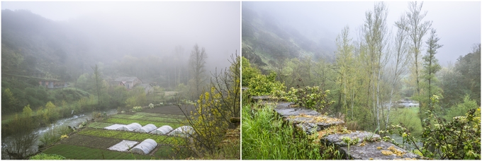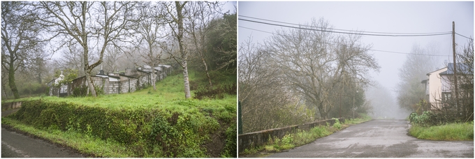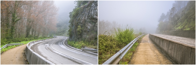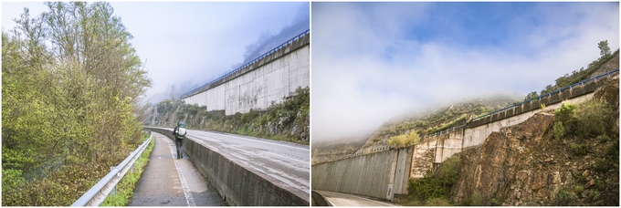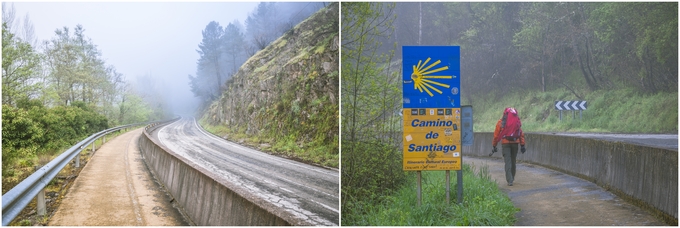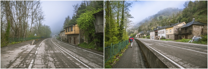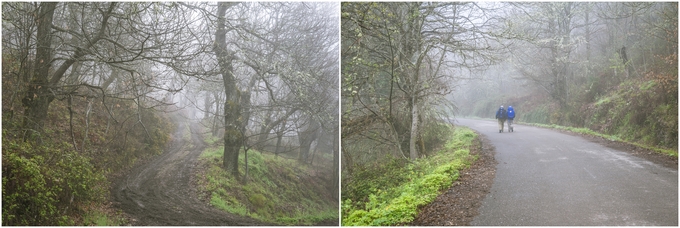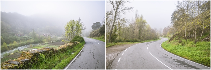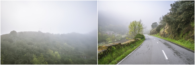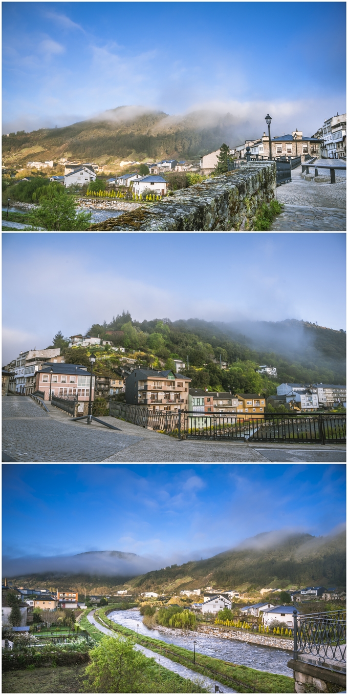 ▲ 여유 있게 출발을 해서 .마을을 벗어나려고 하니 안개가 산을 타고 넘어오기 시작한다. 강을 건너 넘어가면 본격적으로 마을을 벗어나면 마을 출구에서 두 갈래로 길이 나뉜다. 언덕으로 오르는 길로 가면 길은 좀 더 힘들지만 더 볼만하다고 하지만 다리 상태를 고려해서 그대로 직진했다. 다음에 기회가 있다면 다른 길로 가보고 싶다.