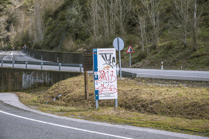 ▲ 마을 안내 표시판에 낙서가 되어 있는 모습이 보인다. 이 지역 사람일까 아닌 순례자들일까하는 생각을 하다 마을 안으로 깊이 들어온다. 길을 따라 형성된 마을은 지나가는데 그리 오래 걸리지 않는다.