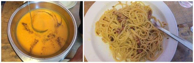 ▲ 저녁 식사이다. 스프와 스파게티 과일 쿠키까지 푸짐하다. 주인이 직접 요리하고 음식을 가져다 주고 많이 먹으라고