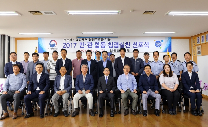 (조세금융신문=신경철 기자) 인천본부세관(세관장 노석환)은 21일 인천세관 본관에서 관세사, 보세창고, 보세운송업체, 특송업체, 하역사 등 관세행정 유관업계 대표 20여 명으로 구성된 인천세관 클린파트너들과 함께 ‘민・관합동 청렴실천 선포식’을 개최했다고 밝혔다.