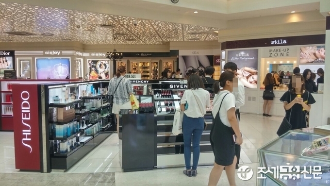 (조세금융신문=신경철 기자) 서울 송파구 롯데면세점 월드타워점이 매장 확장 공사를 끝내고 30일 확장오픈했다. 이날 롯데면세점을 방문한 중국인 관광객들이 화장품 매장을 둘러보고 있다.