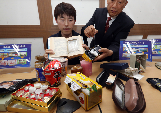 ![5일 서울 강남구 관세청 서울본부세관에서 관계자들이 다양한 방법으로 은닉 밀수된 마약류를 공개하고 있다 [사진=연합뉴스]](http://www.tfmedia.co.kr/data/photos/20170727/art_14992307786545_e16611.jpg)