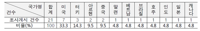 이는 올 들어 대(對)한 수입규제조치(21건) 중 33.3%(7건)에 해당하는 수치다. 전문가들에 따르면 수입규제 조치는 상대국의 보복조치, 자국 내 수입상의 반발 등으로 예외적인 경우에 한해 이뤄진다. 미국의 빈번한 수입규제는 한국을 압박하기 위한 조치라는 분석이다.