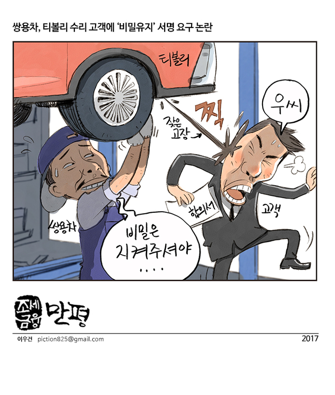 [조세금융만평] 쌍용차, 티볼리 수리고객에 '비밀유지' 서명요구 논란