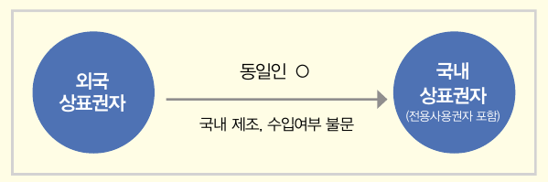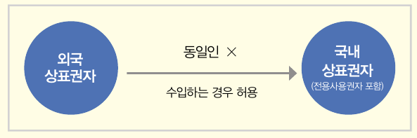 반대로 외국상표권자와 국내 상표권자가 동일인이 아닌 경우에는 원칙적으로 병행수입을 할 수 없다. 그러나 국내 상표 권자 또는 전용사용권자가 진정상품을 수입, 판매만 하는 경우라면 병행수입이 가능하게 된다.