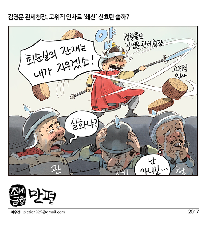[조세금융만평]김영문 관세청장, 고위직 인사로 ‘쇄신’ 신호탄 쏠까?