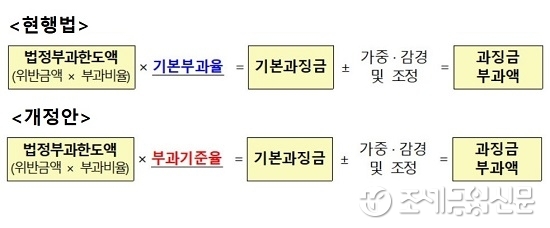 기존에는 법정부과한도액과 기본부과율을 곱해서 나온 기본과징금을 가중·감경 조정해 최종 과징금을 결정했다. 그런데 법정부과한도액이 커질수록 기본부과율이 낮게 적용돼 기본과징금 자체가 과소 책정될 수 있다는 지적이 있었다.