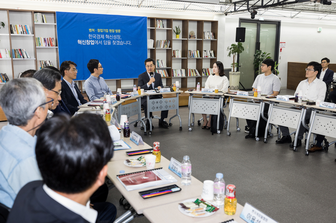 ![18일 김동연 경제부총리 겸 기획재정부 장관이 혁신창업 생태계 현장방문의 하나로 서울 강남구 역삼동 팁스(TIPS) 타운을 찾아 스타트업 대표들과 간담회를 하고 있다 [사진=연합뉴스]](http://www.tfmedia.co.kr/data/photos/20170835/art_1503988754648_6a46cc.jpg)