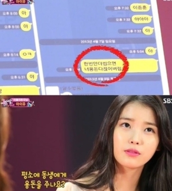 당시 캡쳐본에서 아이유는 대답 없는 동생을 애타게 부르다 "한 번만 더 답장 안 하면 너 용돈 다 끊어버린다"라고 협박조로 말하기에 이르러 웃음을 자아냈다.